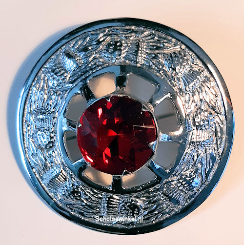 • Plaid Broach, red glass in center, Zilverkleurig, 8 cm