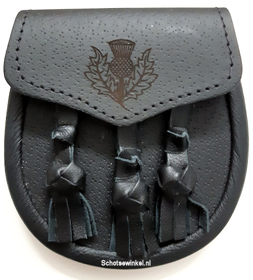 Sporran, Zwart, leer, celtic, pin, 3 tassels