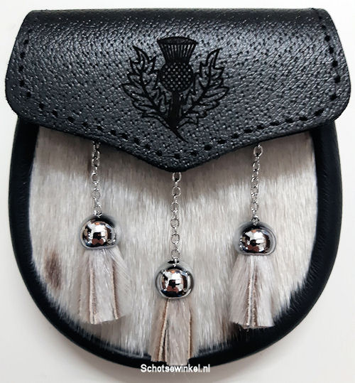 Sporran, Zwart, leer, celtic, pin, 3 tassels