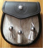 Sporran, Zwart, leer, celtic, pin, 3 tassels