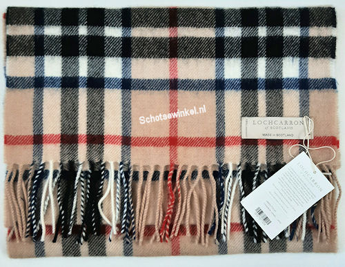 Shawl -Thompson Camel : mod, 100% lamswol. Afmeting ca. 37 x 200 cm.